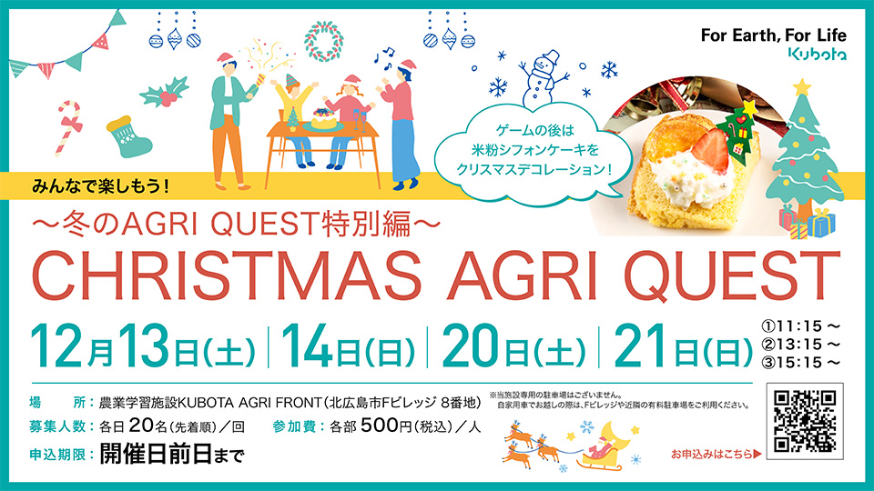 今年も冬の特別編、クリスマスアグリクエストを開催!ゲームと一緒に、米粉シフォンケーキのクリスマスデコレーションを楽しもう!
