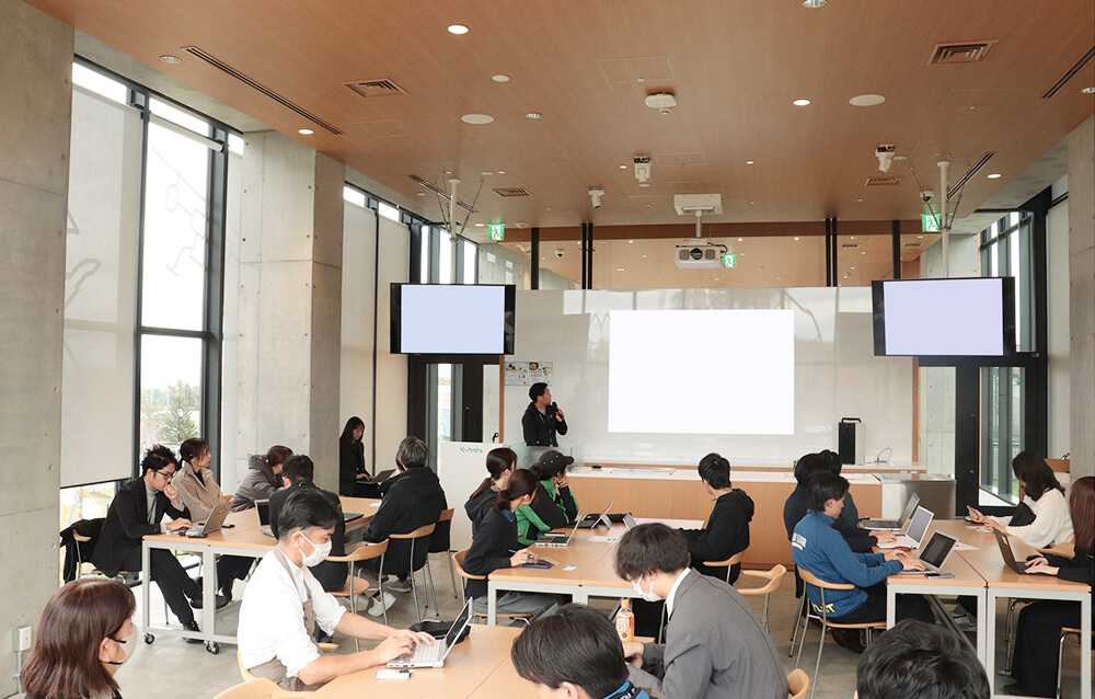 多目的室「STUDIO」は団体様のご見学後の昼食喫食スペースや企業様の記念式典など、様々な用途でご利用いただいております。