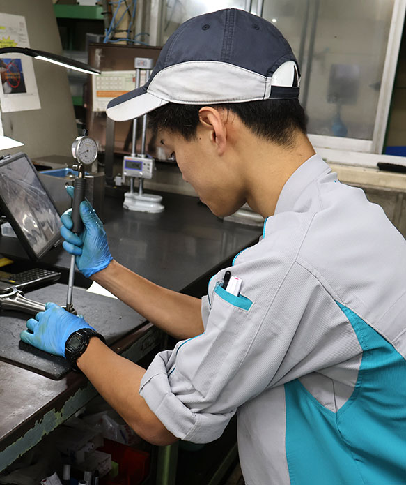 - コンロッド製造ラインにおいて、主にオペレーター業務(機械の操作および異常対応)を担当しています。ライン内で発生する品質や安全に関わる設備異常への対応も重要な役割の一つです。設備トラブルが発生した際には、迅速な復旧対応も行っています。常に「不良品を絶対に流さない」という強い意識を持って業務に取り組んでいます。