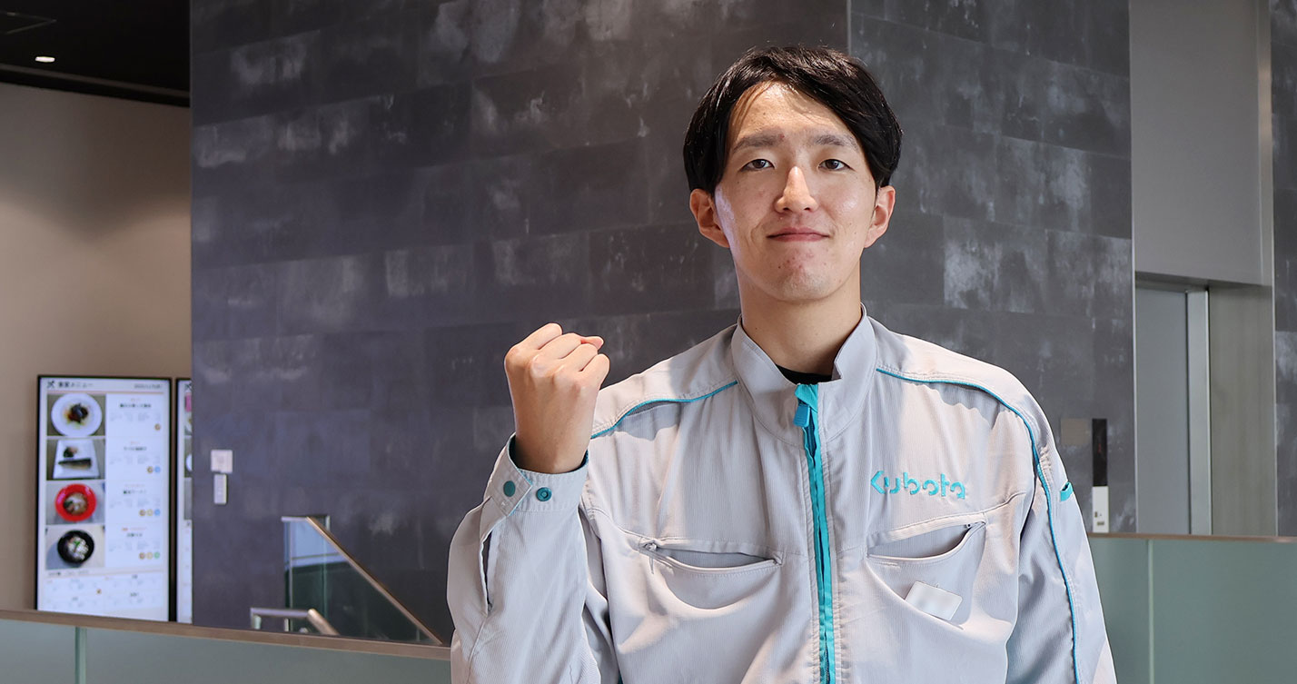 - クボタに興味を持ったきっかけは、大学の先輩が入社したことでした。その後、会社について調べる中で、「食料・水・環境」という人々の生活に欠かせない分野に貢献していることや、「現場主義」という理念に強く共感しました。この理念に惹かれ、クボタへの入社を決意しました。