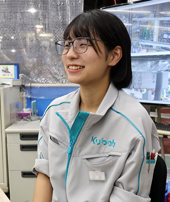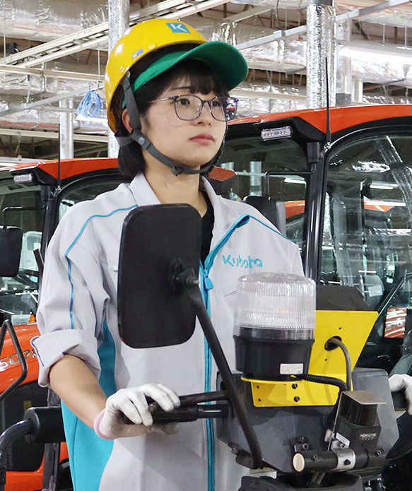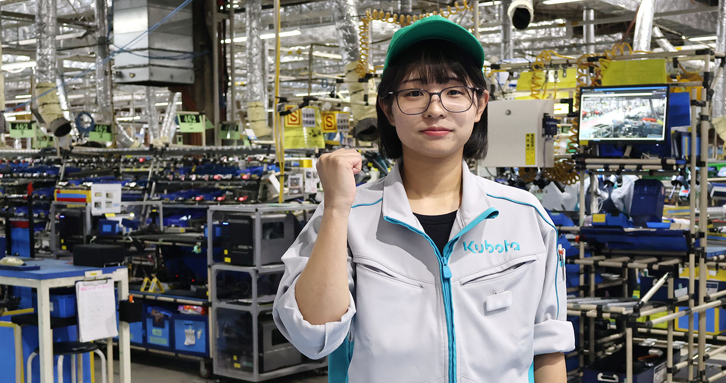派遣会社からクボタへの出向を勧められた際、「これは運命だ」と感じ、すぐに派遣社員として入社しました。 実際にクボタで働く中で農業への関心がさらに高まり、実家を含めた農家の皆さんの力になりたいという思いが強くなりました。そこで、社員として工場から農業を支えていきたいと考え、正社員登用をめざしました。