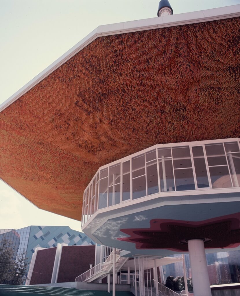 クボタは「豊かなみのり」をテーマにクボタ館として単独出展。建築物や展示物を通して、自然と社会の調和を表現しました。食料・水・環境を事業領域とするクボタでは当時から自然との調和を重要視しており、半世紀以上が経った現在においても、その考えは事業や製品、ソリューションに根づいています。