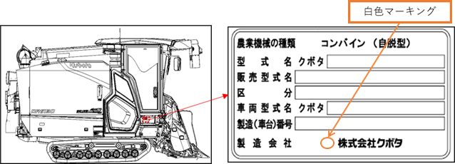 - 刈取脱穀作業車の制御ユニットにおいて、設計検討が不十分であったため、刈取作業中にグレンタンク(収穫した作物を保管する部位)のもみが満杯になった際、前面ガラス上面に備える作業灯が点滅する。そのため、当該作業灯は点滅灯火に該当することから保安基準に適合しない。