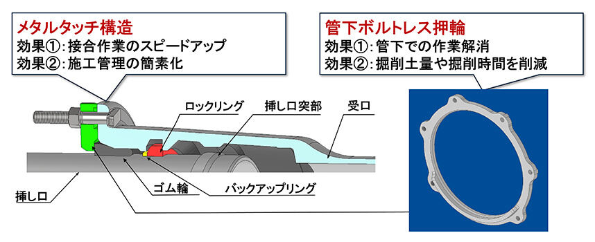 国の施策として、基幹管路の耐震化の推進については高い目標が掲げられている。これまで呼び径500~1000の重要な基幹管路では、優れた強靭性、耐震性を有するNS形ダクタイル鉄管が、多くの事業体で採用されてきた。NS形管がこのように広く普及するのに伴い、更なる施工性向上への要望を数多く頂いていた。また、水道予算の減少に伴い、より低コストでの耐震管路の構築も求められている。