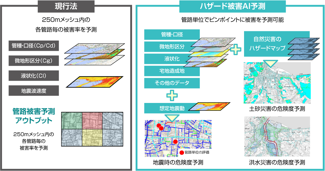 - 地震等の災害で被災する管路をピンポイントで予測可能