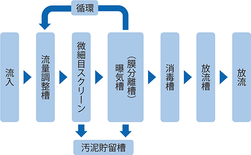 - クボタ液中膜を採用した膜分離活性汚泥法で極めて清浄な水質まで浄化処理しています。