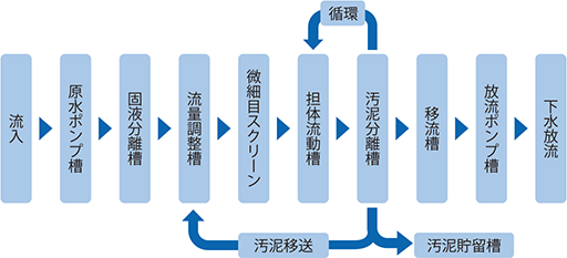 高濃度の有機性排水に対応する担体流動方式を採用し、設置スペースのコンパクト化も実現しました。