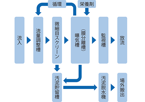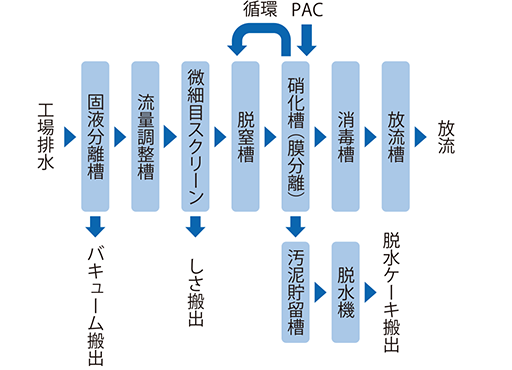 高濃度な鰹節製造排水をクボタ液中膜を適用した膜分離活性汚泥法により浄化処理した後に、安定的に清浄な処理水として河川に放流しています。