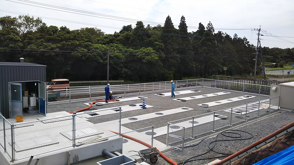 - FRP製のパッケージ施設を地上設置することで、狭い場所への設置を可能にし、省スペースを実現しました。
