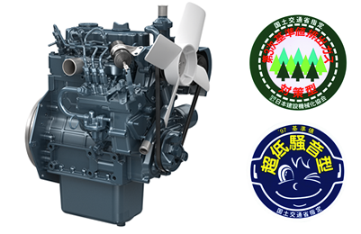 新世代排ガス対応エンジンは、国土交通省排ガス第3次基準値とオフロード法に適合する低エミッション性能を実現。