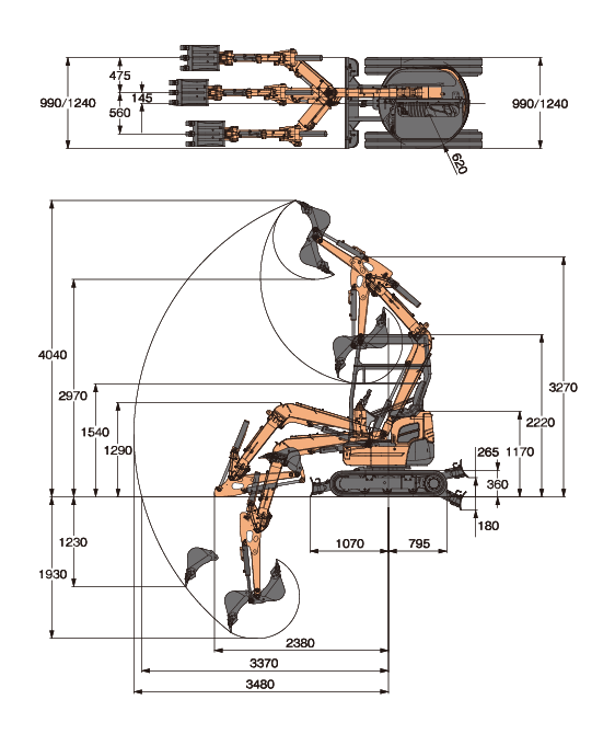 狭い現場でも安心の作業性を実現最小旋回半径620mmを実現し、狭い現場での作業もスムーズに行うことが可能。