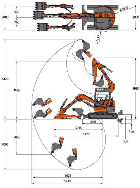 ■RX506S 作業範囲 単位:mm