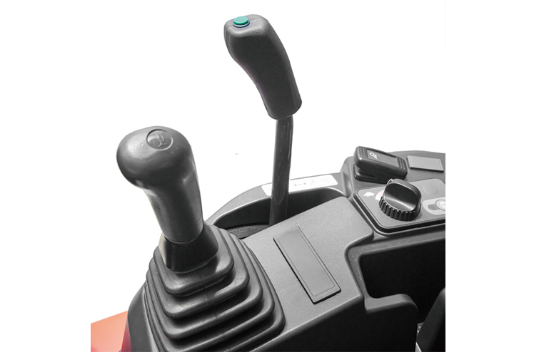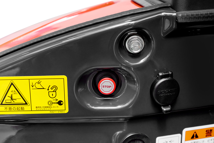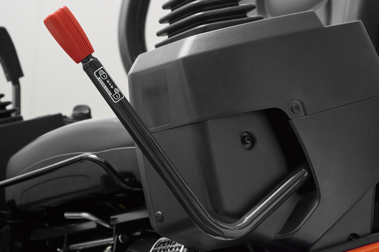 操作ロックレバーが上がった状態でないとエンジンがかからない、安全に配慮した構造です。