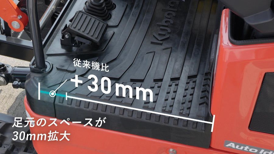 運転席の足元スペースが従来機より30mm拡大し、快適性が向上しました。