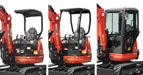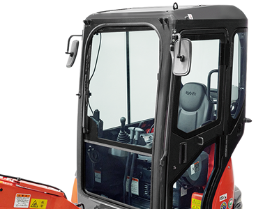 オペレータの安全性を追求したTOPS/ROPS/OPG(トップガード レベルI)に対応したキャノピ・キャブ(シートベルト付)をご用意して安全性をさらに追求。万一の転倒時にオペレータを保護する安全構造を実現。乗降スペースもゆったり設計で、乗り降りも楽々。