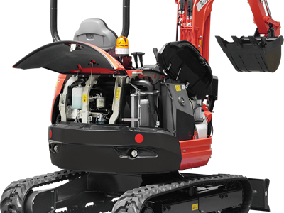 後部と右サイドの上部カバーが工具なしで大きく開くので、エンジン周りや燃料系の日常点検・整備が手軽に可能。
