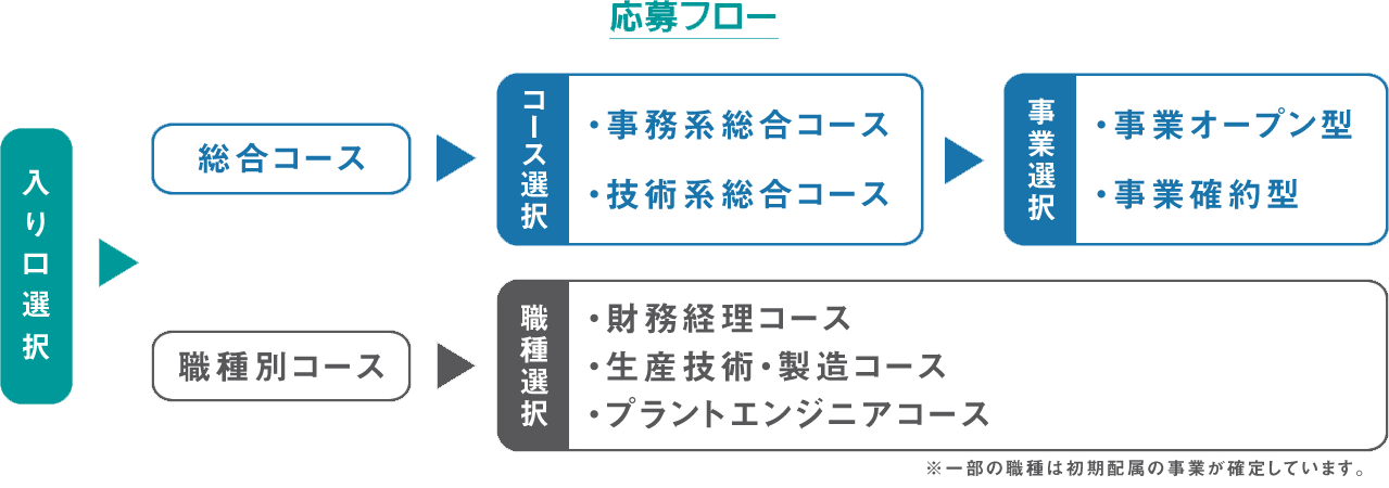 「初期配属時職種別コース」は、初期配属される職種が決定しているコースです。